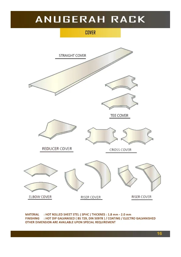 Cover adalah penutup yang digunakan pada cable tray atau cable ladder untuk melindungi kabel dari debu, air, benturan, dan gangguan lingkungan lainnya.