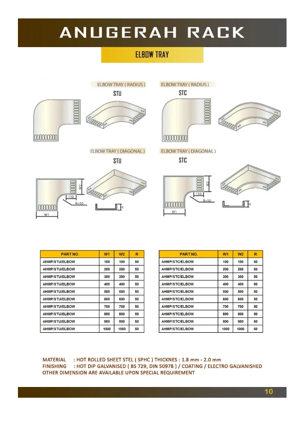 Elbow Tray adalah aksesoris cable tray yang digunakan untuk mengubah arah jalur kabel, baik 90° maupun 45°, secara horizontal atau vertikal.